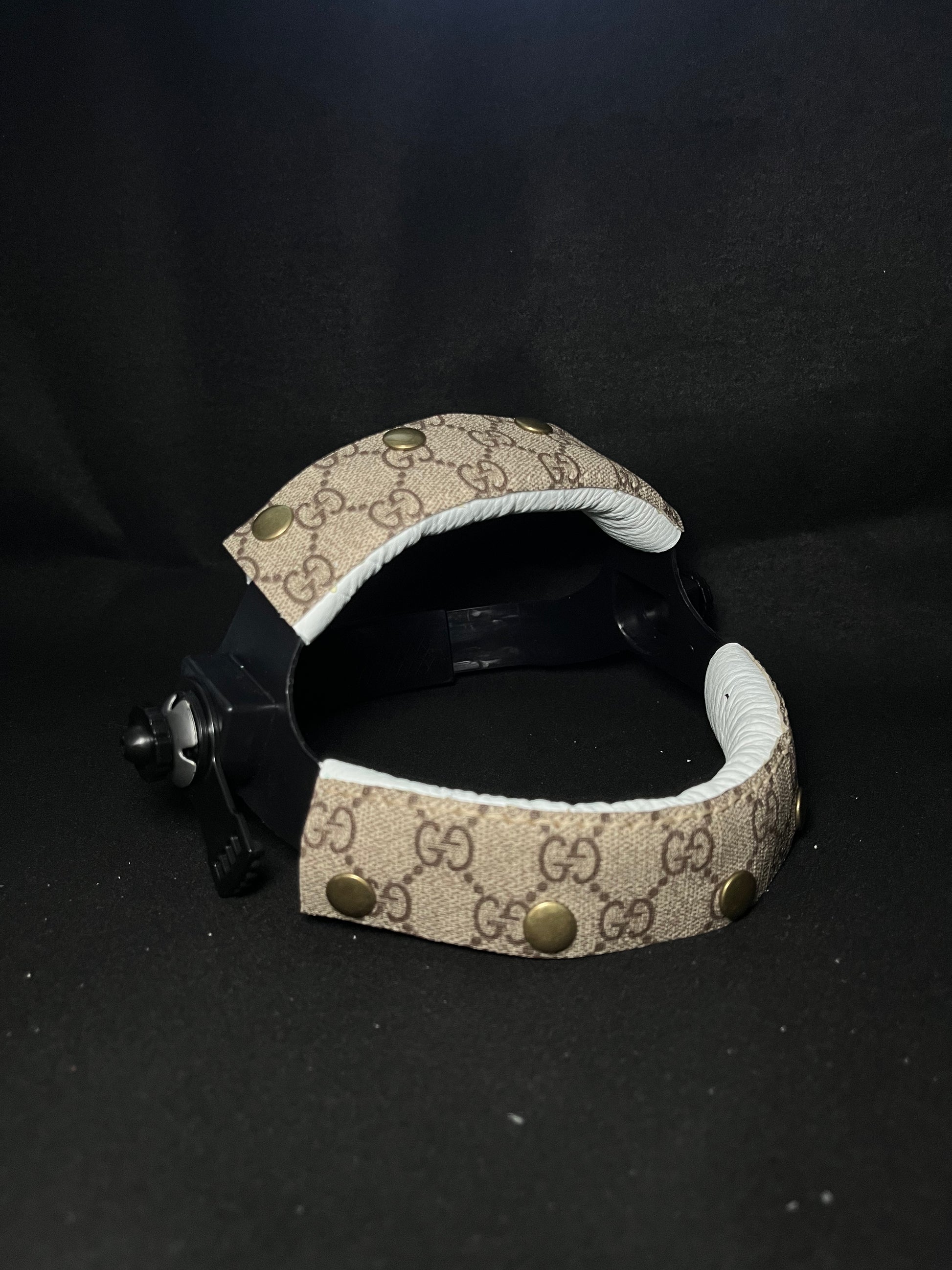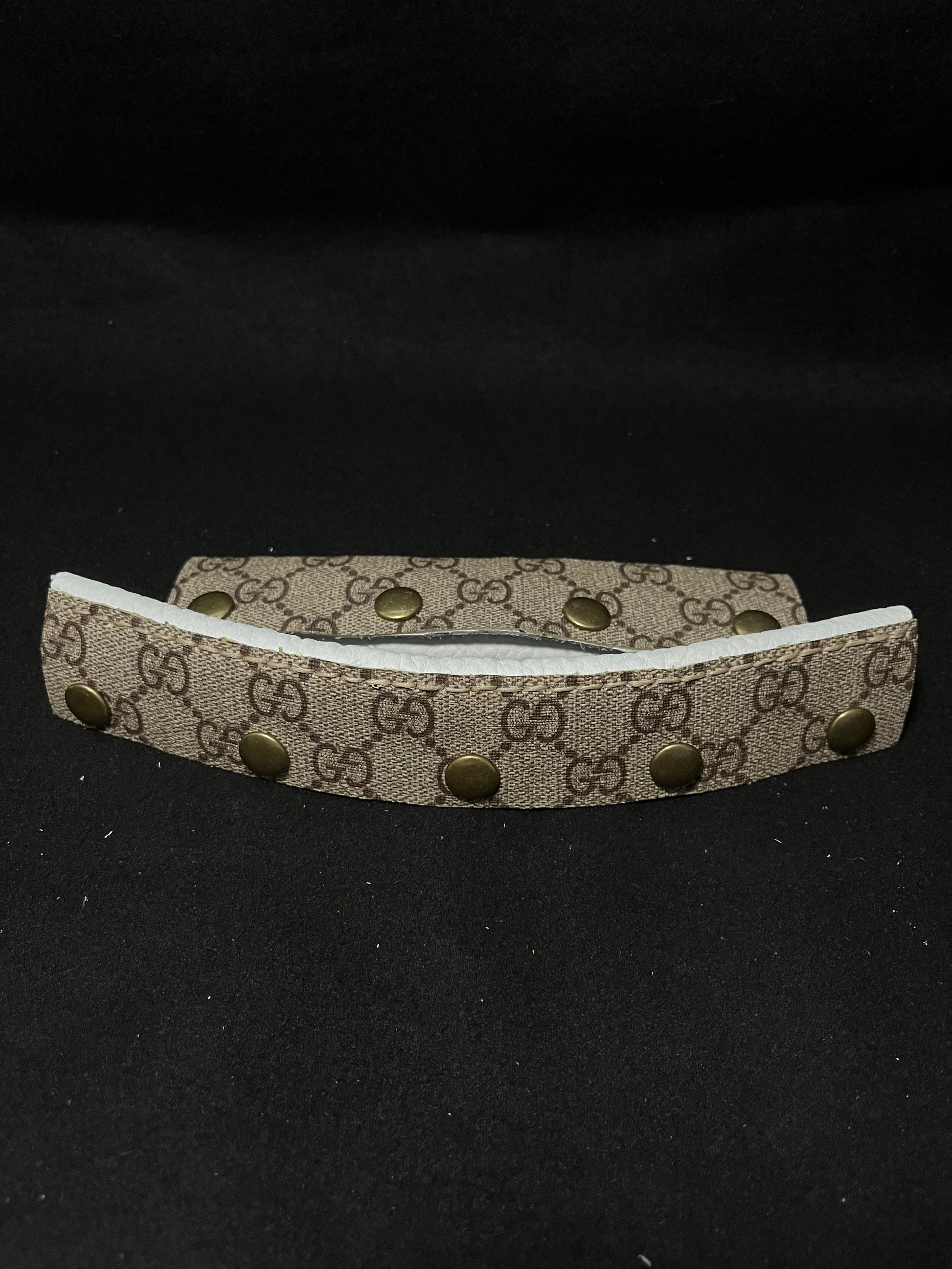 A set of front and top gucci headbands with padding on the inside for maximum comfort